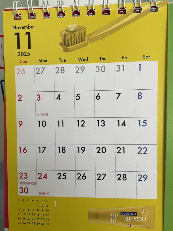 11月の診療予定 11月は10日(月)が17時20分までの診療となります。 15日(土)は13時までの診療となります。 診療時間は 月火水木金土は9時〜13時 月火水 金は15時〜19時 土は15時〜17時 ひろた歯科クリニック 06-6151-4448 秋🍂がやってきました。日中は上着がいらないちょうどいい季節になりました。 今年こそゆっくりと色づいていく長い秋を期待したいと思います。 久しぶりに本を読みます。 一覧に戻る
