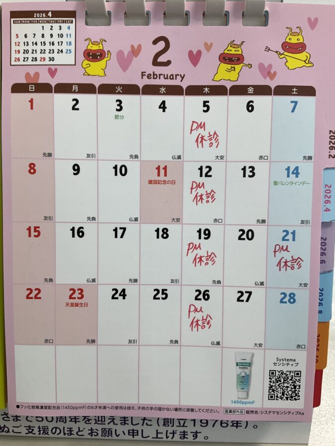2月21日(土)は午前診療のみ(13時まで)の診療となります。